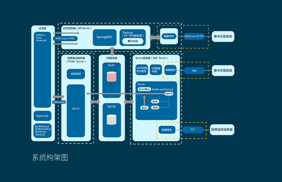 ● 在Storm技术基础之上实现了实时大数据处理引擎。客户定制的策略规则、实时MOT提醒等能以毫秒级的速度进行推送,及时帮助客户进行交易决策。