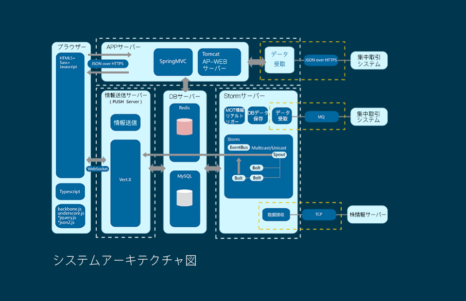 世通市況取引システムはフロントエンドが業界標準のHTML5実装を採用し、クライアントにプラグインをインストールする必要はありません。端末デバイスのハードウェアおよびソフトウェア環境に制限されません。バックエンド市況の計算では、リアルタイムのビッグデータエンジンと、高い同時アクセスとリアルタイムの市場データ送信をサポートするデータサービスアーキテクチャを使用します。